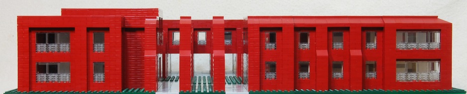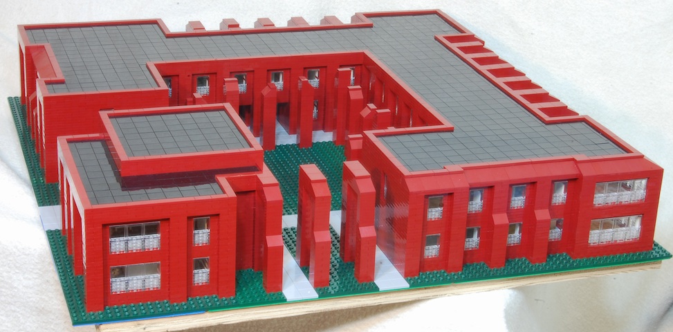 The model is built with parts from the recent Lego architectural series, a significant cause of my inspiration for this project. The model fits within a 2 x 2 foot square, with a scale of 1/64. Proportions are close but not exact. The pieces do impose some limits, especially as to size, and limit architectural detail. Still, I think the pieces offer great possibilities for preliminary designs.