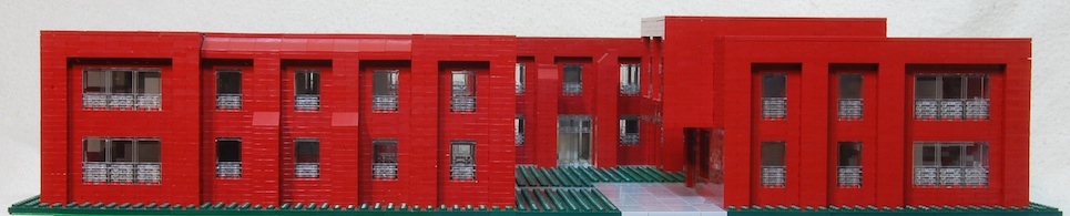 It is my first effort, and I question the regularity of a square building with the rooms aligned down a central corridor. My other thought is of a design where the offices are broken up in a loose maze-like construction, extended throughout the campus, which I may attempt later.