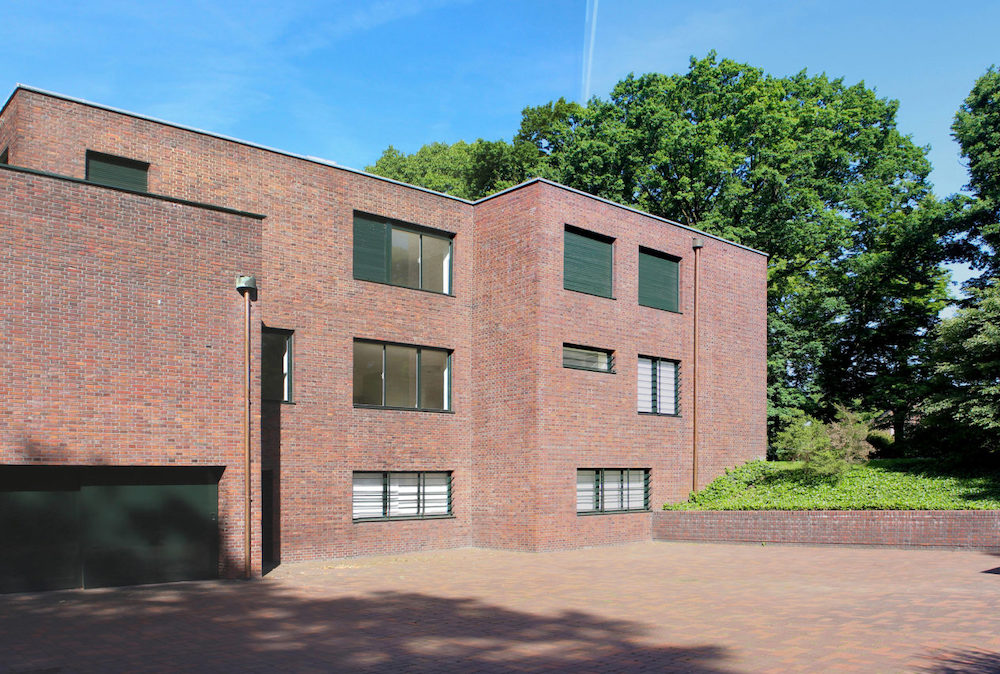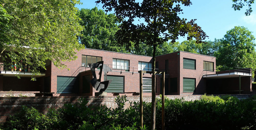 The Krefeld Villas, Haus Esters and Haus Lange, stylistically interrelated, built together, completed in 1930, were converted into contemporary art museums years after the war. In 1969 Haus Lange held a Sol LeWitt exhibition that included his cube sculptures. One of them, Three Cubes, was placed on the deck by the dining room, before the garden.